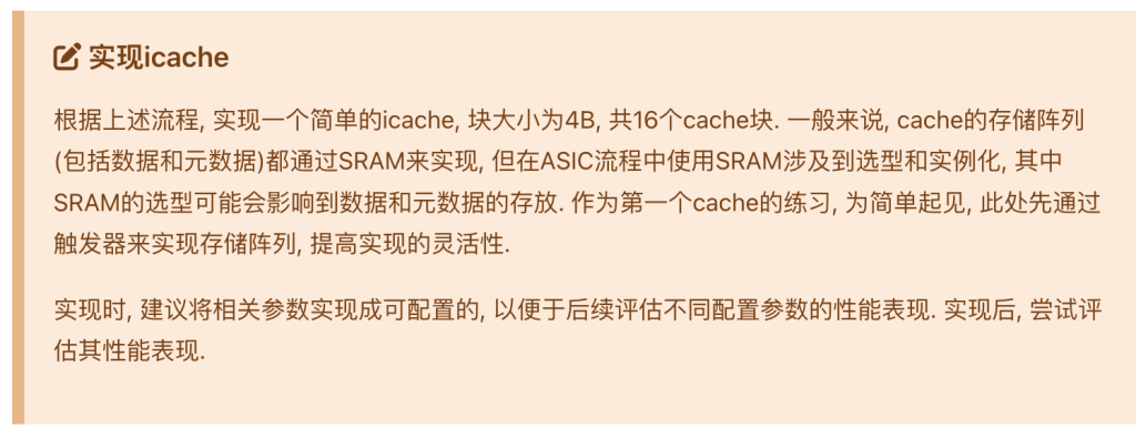 icache需要对总线进行访问(根据块大小的不同可能需要多次访问(瞥了一眼后面的讲义,要用到axi的突发传输,我估计就是来实现这个多次访问的),希望可以做成可配置的)