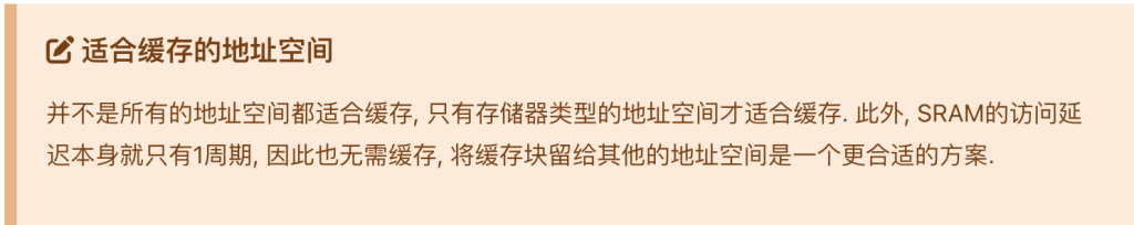 首先第一步应该确定icache应该放在哪个位置,core->arbiter->xbar->soc总线->dram,这是我的cpu一次访存的基本路径,访存信号经过xbar的时候先判断是否是clint,不是就是进入soc总线,如果放在soc和xbar之间,恐怕有写设备的访问也会进入icache,但是根据第二个黄框,只有flash,sdram的访问时候icache,其实本质的问题就是soc的访问是由哪一个模块来做,这很像一个arbiter的感觉呀(多个master,一个是icache,一个是xbar对于uart等设备的访问)
